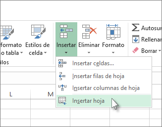 También puede seleccionar Inicio > Insertar > Insertar hoja.