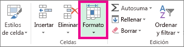 En la pestaña Inicio, en el grupo Celdas, haga clic en la opción Formato.
