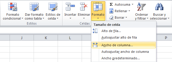 En Tamaño de celda, haga clic en Autoajustar ancho de columna.