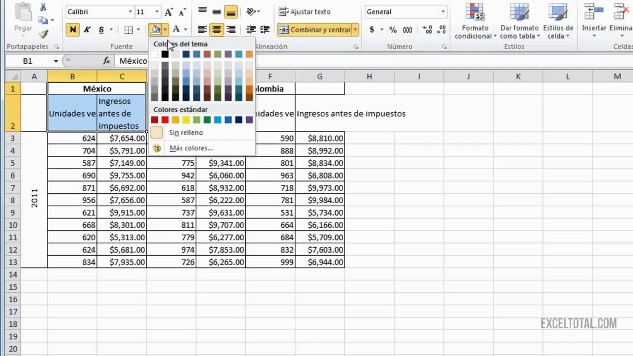 - En el grupo Fuente de la ficha Inicio, haga clic en la flecha que aparece junto a Color de relleno y, a , en Colores del tema o Colores estándar, haga clic en el color que desee.